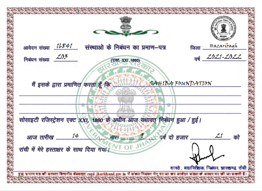 Sahiba Foundation is established by Sri Praveen Pranav in 2018 and registered as an NGO in 2021 under Societies Registration Act XXI,1860 with a vision to creating a