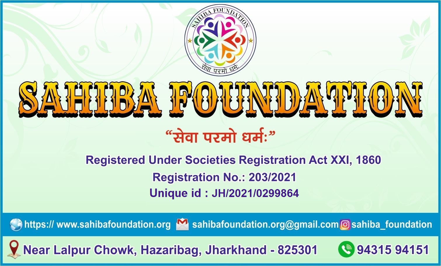 The word “SAHIBA”, the name of this ‘Foundation’ has been taken, inspired from “GURU GRANTH SAHIB”, where is it’s full form is as below: S - Stop Child Labour; A– Abuse & Harassment Prevention; H – Health & Education Program; I – Initiatives for Environmental Protection; B – Boosting Indian Tradition & Culture; A – Awareness & Action for Social Change.